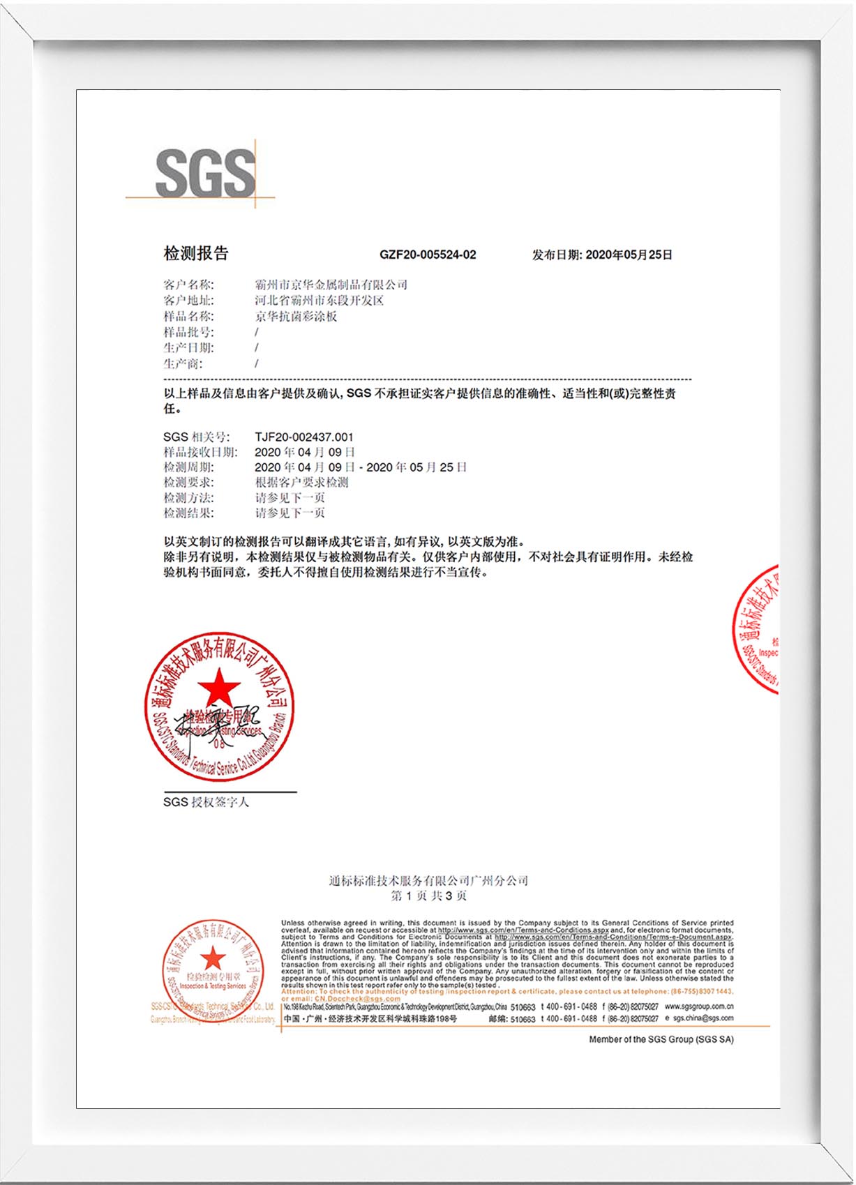 SGS檢測(cè)報(bào)告