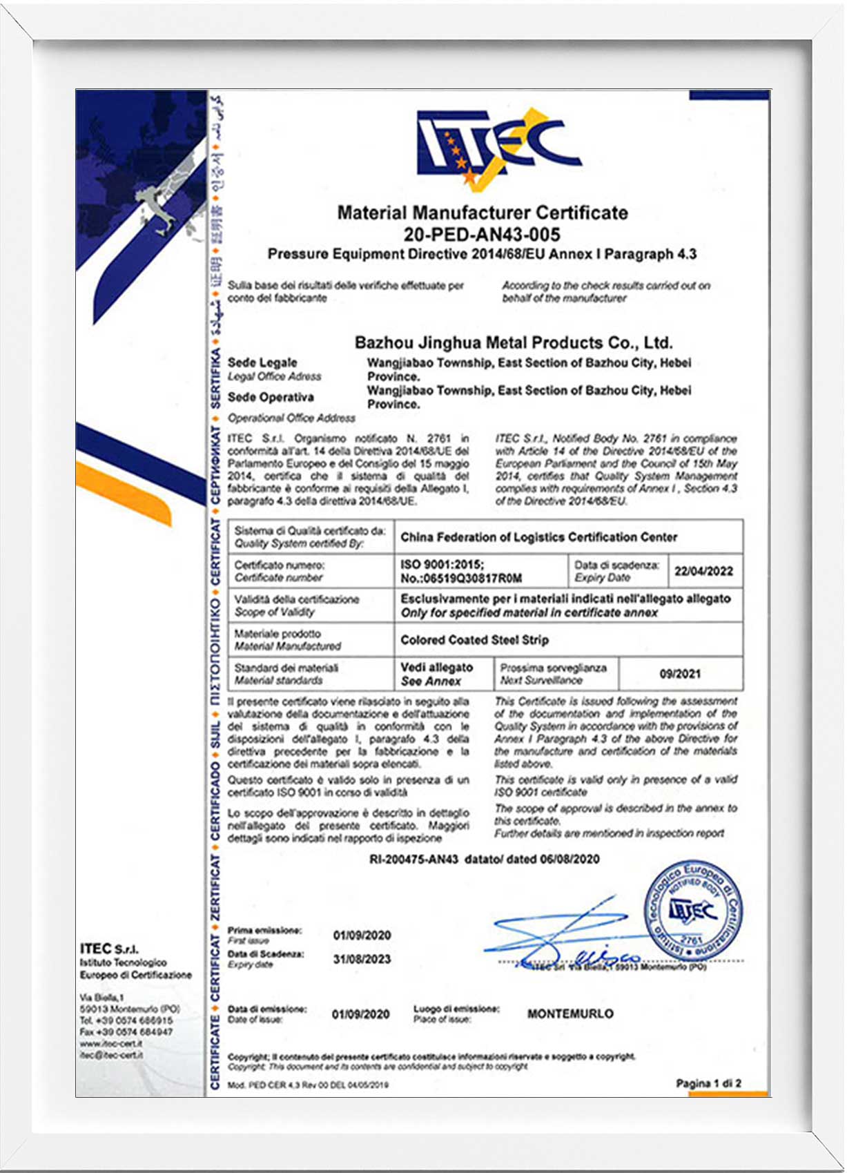 歐盟CE認(rèn)證證書(shū)