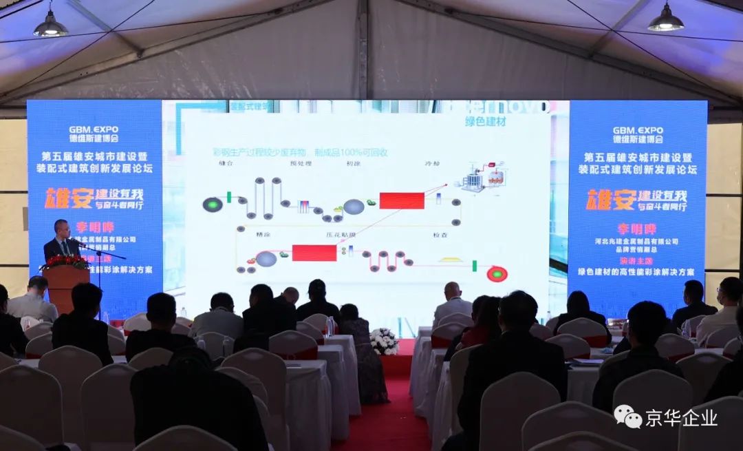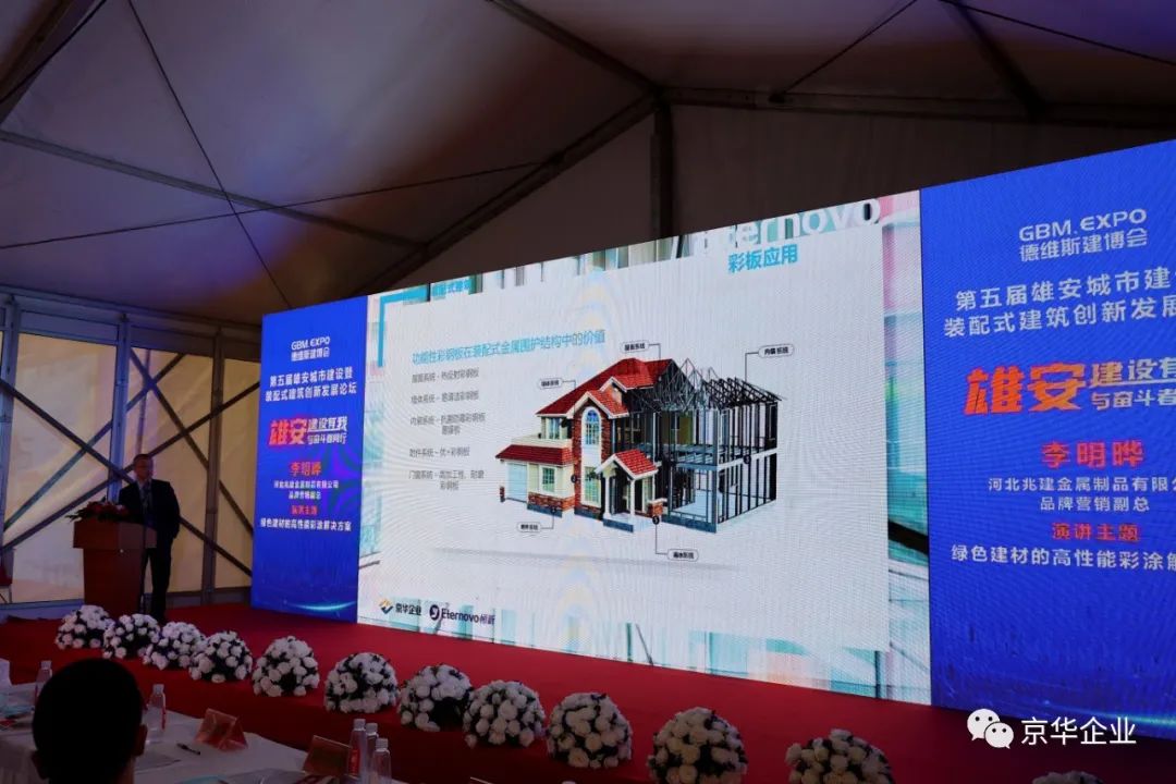 本著拓展視野、開闊思路、學(xué)習(xí)先進、交流合作的目的,京華兆建應(yīng)邀參加此次會議并推出《綠色建材的高性能彩涂解決方案》。京華兆建旗下Eternovo恒新品牌營銷副總李明曄先生針對裝配式建筑這一課題發(fā)表了精彩演講同時對Eternovo恒新功能性彩涂板的介紹以及對京華兆建企業(yè)文化的宣導(dǎo)也得到了參會觀眾的認(rèn)可與肯定。