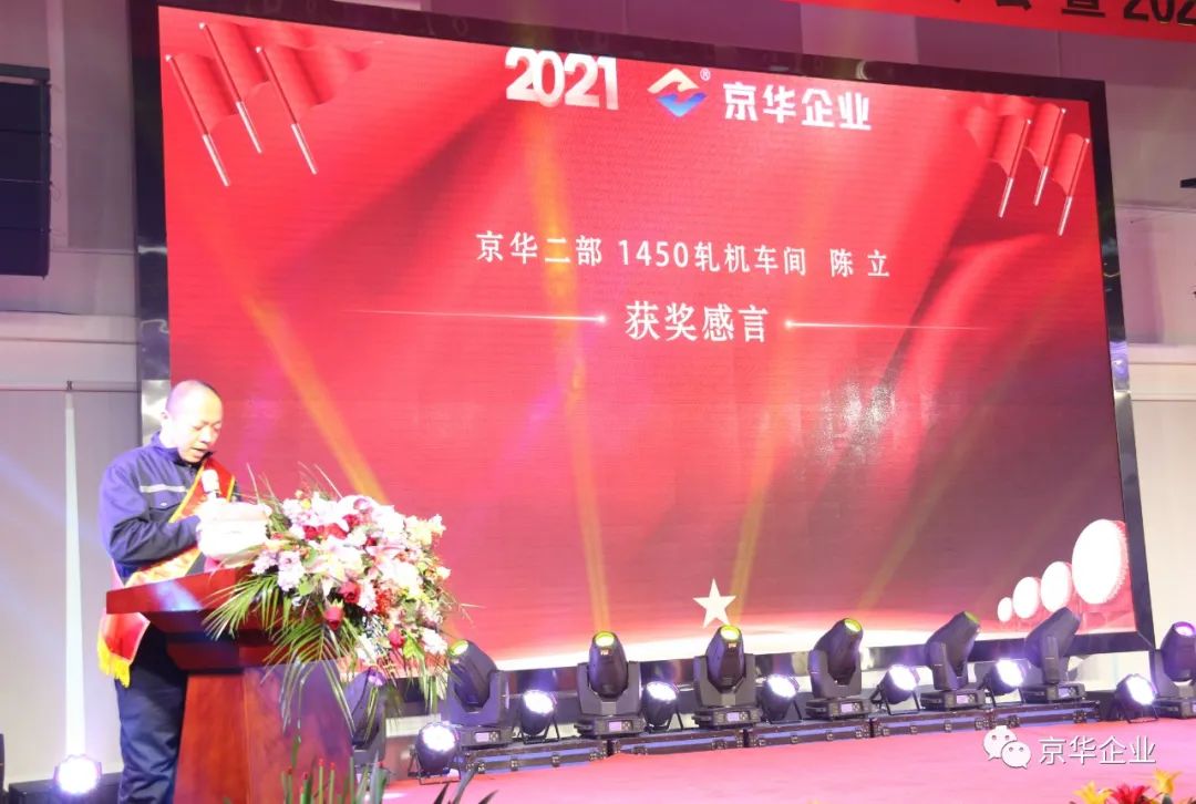 一分耕耘,一分收獲。2021年,一大批愛崗敬業(yè)、自強不息的京華企業(yè)優(yōu)秀員工用實際行動為公司的發(fā)展貢獻了鮮活的力量,也為廣大公司員工樹立了學習的榜樣。本次表彰大會共產(chǎn)生年度優(yōu)秀個人獎項90個、年度優(yōu)秀車間團體獎項4個,獲獎員工及班組代表依次走上領獎臺接受公司領導的鼓勵與嘉獎,公司領導為每位獲獎員工頒發(fā)了榮譽證書及精美獎品并合影留念。最后由優(yōu)秀員工代表京華二部1450軋機車間陳立及優(yōu)秀管理者代表兆建酸軋車間王育壯發(fā)表了精彩、感人的獲獎感言,公司全體員工也為獲獎同事獻上了最真誠的祝福和最熱烈的掌聲。