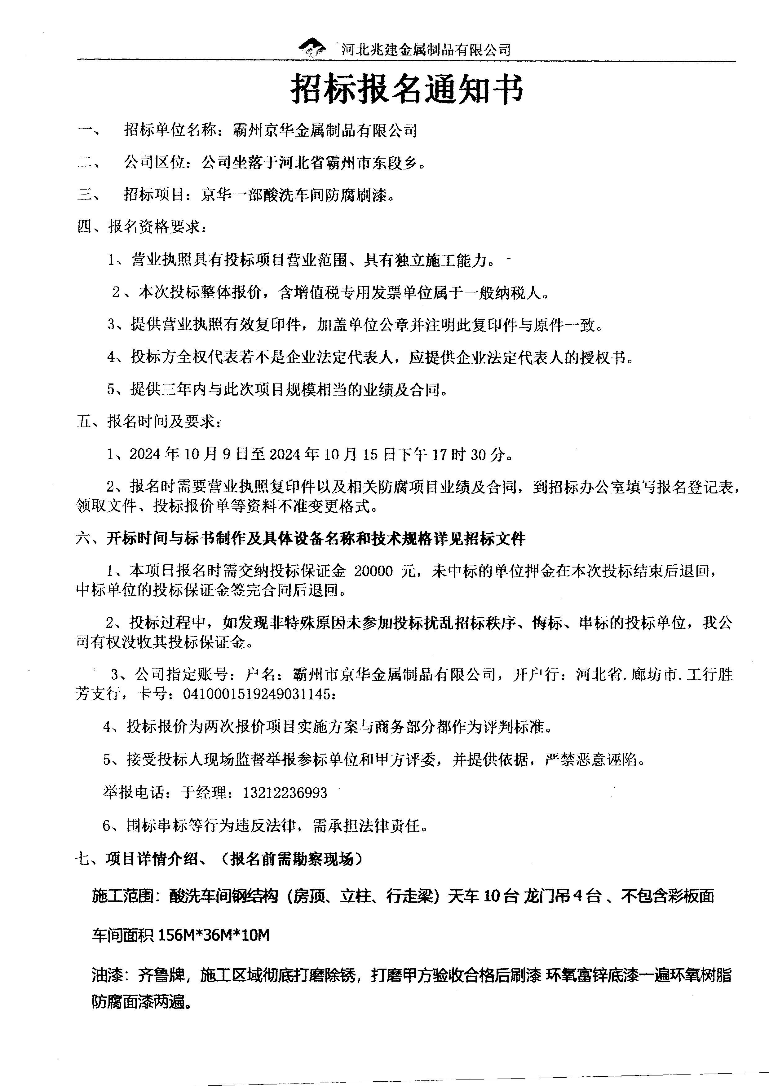 • 招標(biāo)業(yè)主: 河北兆建金屬制品有限公司