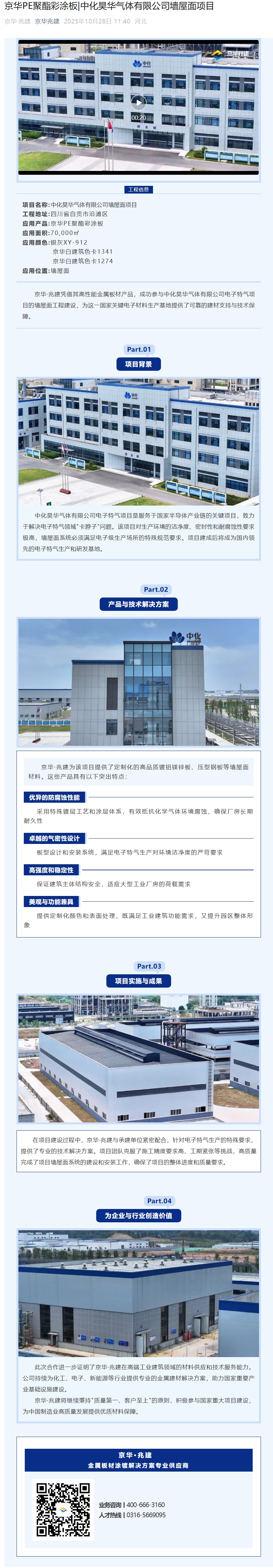 京華PE聚酯彩涂板工程案例-中化昊華氣體有限公司墻屋面項目